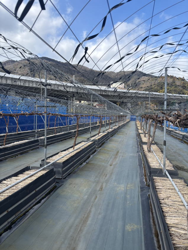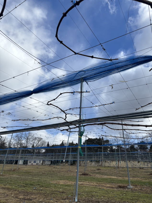 わずか4メートルの一文字仕立ての葡萄の木。なんと2年目から収穫出来るそうです。大変充実した2日間となりました。以上青年部の報告でした。